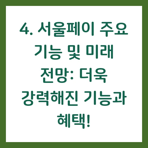 서울페이는 끊임없이 진화하고 있습니다. 블록체인 기술 도입, AI 기반 개인 맞춤형 서비스 강화, 해외 결제 서비스 연동 등 혁신적인 기술 발전을 통해 미래 지향적인 결제 플랫폼으로 도약하고 있습니다. 사용자 중심의 서비스 개선을 통해 더욱 편리하고 스마트한 결제 경험을 제공할 것입니다.