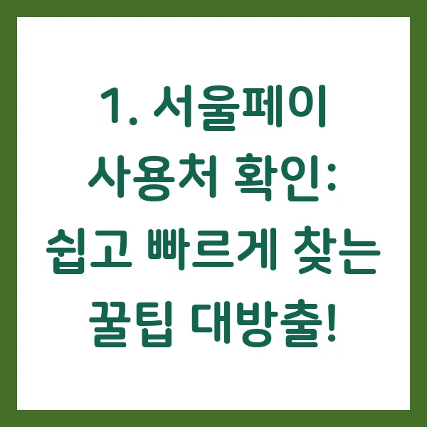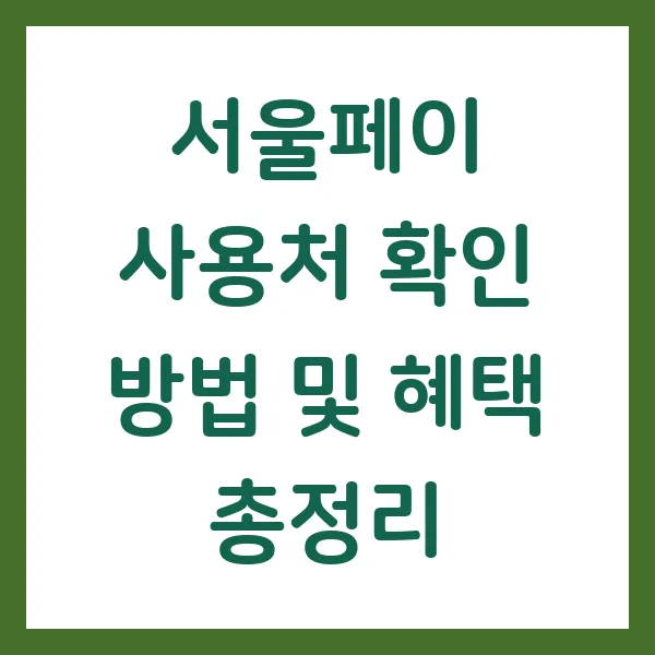 서울페이, 들어는 봤지만 어디서 어떻게 써야 할지 막막하신가요? 서울페이 사용처와 혜택, 2025년 최신 정보를 바탕으로 완벽하게 정리했습니다! 지금 바로 확인하고 스마트한 소비 생활을 시작하세요! 할인, 적립, 이벤트까지! 서울페이의 모든 것을 알려드립니다.