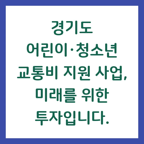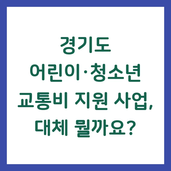 더 자세한 정보나 궁금한 점이 있다면 경기도 어린이·청소년 교통비 지원 포털 을 방문하거나 경기교통공사(☎ 1577-8459)에 문의하세요. 친절하게 답변해 드립니다. 이 혜택, 놓치지 말고 꼭 챙겨서 우리 아이들 교통비 부담 덜어주자고요!