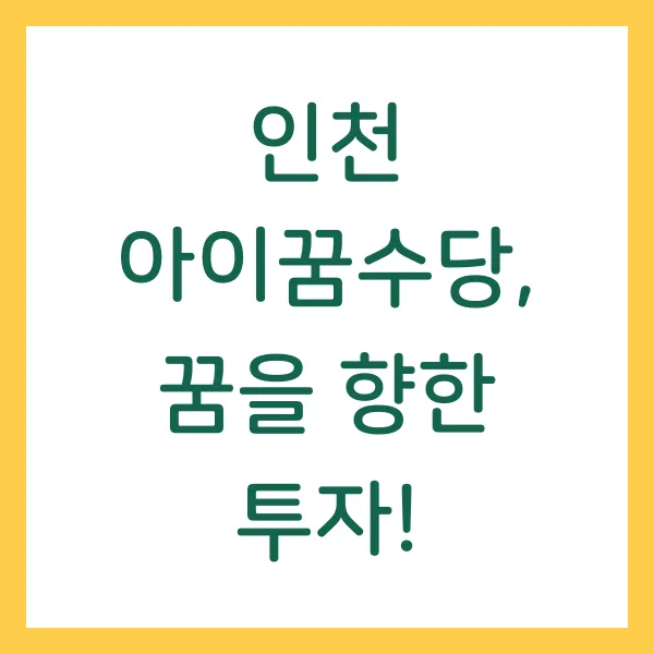인천 아이꿈수당, 이 혜택, 절대 놓치지 마세요! 우리 아이들의 꿈을 더 크게 키워주고, 더 밝은 미래를 선물할 수 있는 절호의 기회입니다. 더 자세한 정보는 인천시청 홈페이지 또는 보조금24 웹사이트 를 참고하세요! 지금 바로 신청하고, 우리 아이의 꿈을 응원해 주세요! 망설이지 말고, 지금 바로 시작하세요!