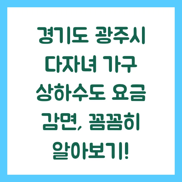 아이 키우기 힘든 세상, 광주시가 든든한 지원군이 되어 드립니다. 다자녀 가정의 경제적 부담 완화를 위해 광주시에서는 상하수도 요금 감면 혜택을 제공하고 있는데요, 과연 어떤 혜택이고 누가 받을 수 있는지, 또 어떻게 신청해야 하는지 자세히 알려드리겠습니다!