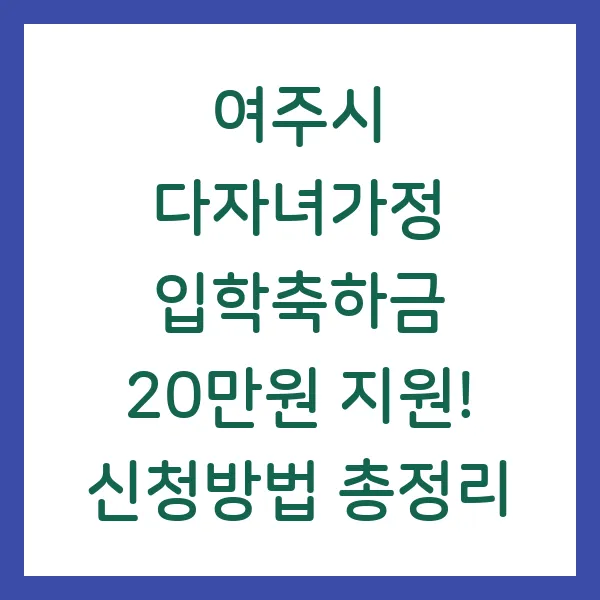 자녀 양육은 미래를 향한 값진 투자입니다. 여주시는 다자녀 가정의 양육 부담을 덜어드리고, 아이들이 건강하고 행복하게 자랄 수 있도록 끊임없이 노력하겠습니다. 입학축하금 지원 사업을 통해 학부모님들의 걱정을 덜어드리고, 아이들이 꿈과 희망을 키워나갈 수 있도록 힘껏 응원합니다! 여주시의 다자녀 가정 지원 정책을 통해 더욱 행복하고 풍요로운 가정을 만들어가세요. 궁금한 점은 언제든 여주시청 가족복지과(☎ 031-887-2588)로 문의하세요! 성심껏 답변해 드리겠습니다. 더불어, 정부의 다양한 지원 정책과 연계하여 더욱 폭넓은 혜택을 제공할 수 있도록 힘쓰겠습니다. 아이 키우기 좋은 도시, 여주시가 함께합니다!
