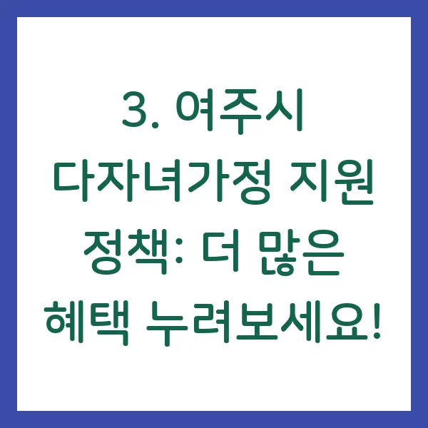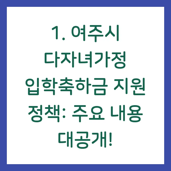 입학축하금 외에도 다자녀 가정을 위한 다양한 지원 정책이 준비되어 있습니다. 출산장려금, 양육수당, 아이돌봄 서비스, 다자녀 가정 우대 카드 발급 등 쏠쏠한 혜택들이 가득! 여주시청 홈페이지나 가족복지과에 문의하여 꼼꼼하게 확인하고, 모든 혜택 놓치지 말고 챙겨가세요!