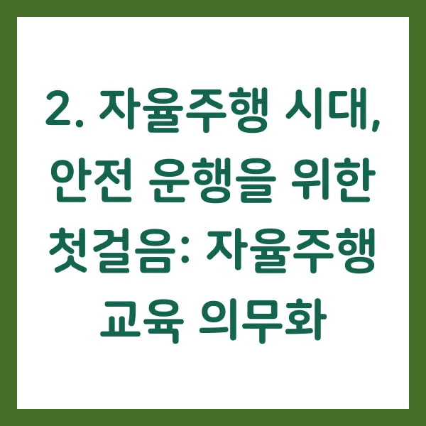 자율주행 기술은 우리의 삶을 혁신적으로 바꿀 잠재력을 지니고 있지만, 안전 문제를 간과해서는 안 됩니다 . 자율주행 시대의 안전 운행을 위해 2025년 3월 20일부터 자율주행 교육이 의무화 되었습니다!