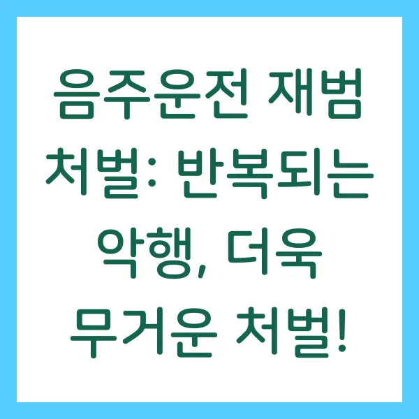 음주운전은 재범률이 매우 높은 범죄입니다. 이에 따라 법은 음주운전 재범자에 대한 처벌을 더욱 강화하고 있습니다. 2회 이상 적발 시 벌금과 면허 취소 기간이 증가하며, 3회 이상 적발 시에는 징역형까지 선고될 수 있습니다. 심지어 차량 압수 가능성도 있습니다! 과거의 잘못을 반복하지 않도록 주의해야 합니다.