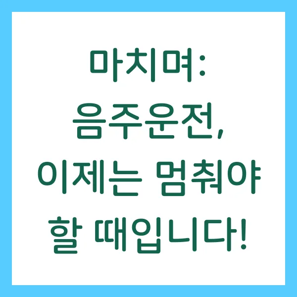 음주운전은 단순한 실수가 아닌, 타인의 생명을 위협하는 중대한 범죄 입니다. '나 하나쯤이야'라는 안일한 생각은 버리고, 책임감 있는 행동으로 음주운전 없는 안전한 사회를 만들어 나가야 합니다. 이 글을 통해 음주운전의 심각성을 다시 한번 깨닫고, 예방을 위해 적극적으로 노력하는 계기가 되기를 바랍니다. 더 이상 음주운전으로 인한 안타까운 사고가 발생하지 않도록, 우리 모두 함께 노력해야 합니다!