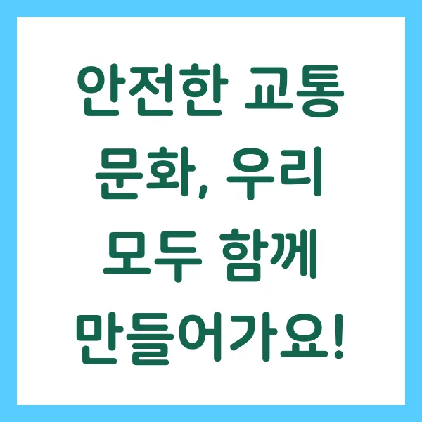 안전한 교통 문화는 법규 준수만으로는 완성될 수 없습니다. 운전자들의 의식 개선과 적극적인 참여가 필수적 입니다! 보행자를 배려하는 마음, 안전 운전 습관, 그리고 교통 법규 준수! 이 세 가지를 꼭 기억해 주세요. 교차로 우회전, 이제는 멈춰서 안전하게!