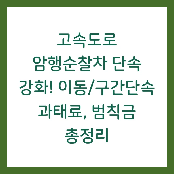 고속도로 교통사고 예방을 위한 암행순찰차 단속과 구간단속이 강화되고 있습니다! 과속은 돌이킬 수 없는 비극을 초래하는 주범이죠. 개정된 법규에 따른 과태료와 범칙금 정보, 그리고 안전운전 팁까지, 지금 바로 확인하세요! 놓치면 후회할지도 몰라요! 😉