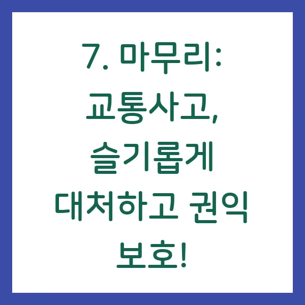 교통사고, 누구에게나 일어날 수 있는 불행한 사건입니다. 하지만 당황하지 않고 침착하게 대처한다면 피해를 최소화하고 정당한 보상을 받을 수 있습니다. 본 포스팅에서 제시된 단계별 조치들을 숙지하고, 필요시 전문가의 도움을 받는다면 교통사고라는 힘든 상황을 슬기롭게 헤쳐나갈 수 있을 것입니다. 안전 운전, 그리고 만약의 사고에 대한 대비, 잊지 마세요!