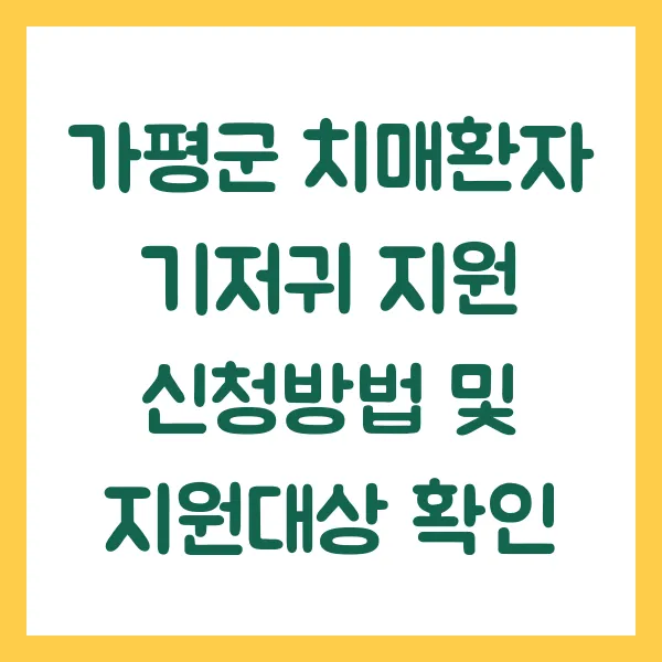 치매 환자 기저귀 지원 사업은 치매 환자와 가족의 부담을 덜고 삶의 질을 높이는 데 큰 도움이 될 것입니다. 이 정보가 치매 환자와 가족 여러분께 작은 힘이 되길 바라며, 궁금한 점은 언제든 가평군 보건소나 치매안심센터로 문의하세요! 😊 가평군이 치매 환자 돌봄, 함께 응원합니다!