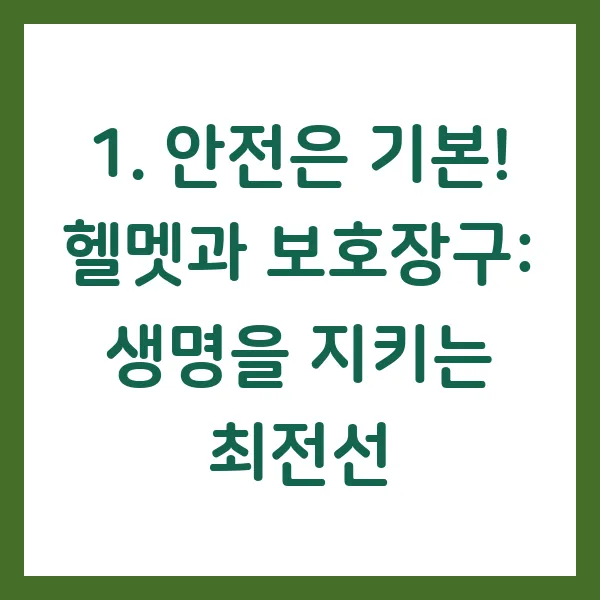 오토바이를 탈 때 가장 먼저, 그리고 가장 중요한 것은 바로 안전 장비 착용 입니다. 헬멧은 두부 손상으로부터 라이더의 생명을 지켜주는 최전선의 방어선과 같죠. 안전벨트가 자동차 탑승자를 보호하듯, 헬멧은 오토바이 운전자에게 필수적인 안전장비 입니다. 사고 발생 시 헬멧 착용 여부가 생사를 가를 수 있다는 사실, 잊지 마세요! 헬멧 착용은 단순한 의무가 아닌, 나 자신을 위한 최소한의 약속입니다.