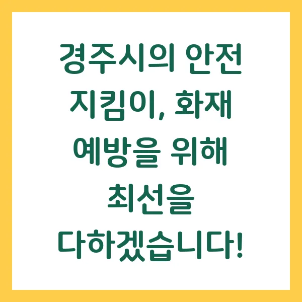 경주시의 화재 예방 노력과 시민 여러분의 적극적인 참여가 만나 더욱 안전한 경주를 만들어갈 수 있기를 기대합니다! 모두의 안전을 위해 함께 노력해 주세요!