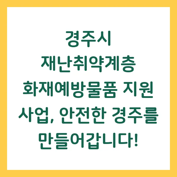 경주시는 시민 여러분의 안전을 위해 끊임없이 노력하고 있습니다. 재난취약계층 화재예방물품 지원 사업은 그 노력의 일환입니다. 소화기와 감지기 지원을 통해 화재로부터 소중한 생명과 재산을 보호하고, 더욱 안전한 경주를 만들어나가겠습니다.