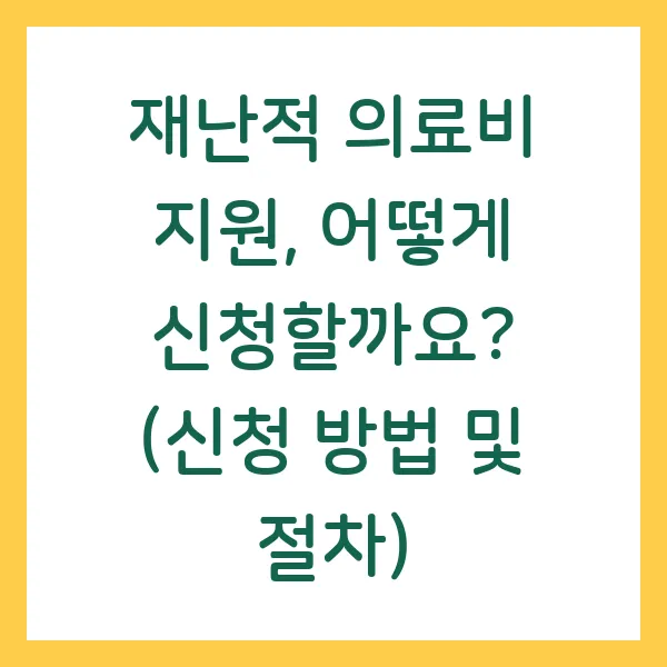 재난적의료비 지급 신청서(신분증 지참), 개인정보 수집/이용 및 제공/조회 동의서, 가족관계증명서, 민간보험 가입 서류, 입퇴원 확인서 등이 필요합니다. 서류 준비는 미리미리 해두는 센스!