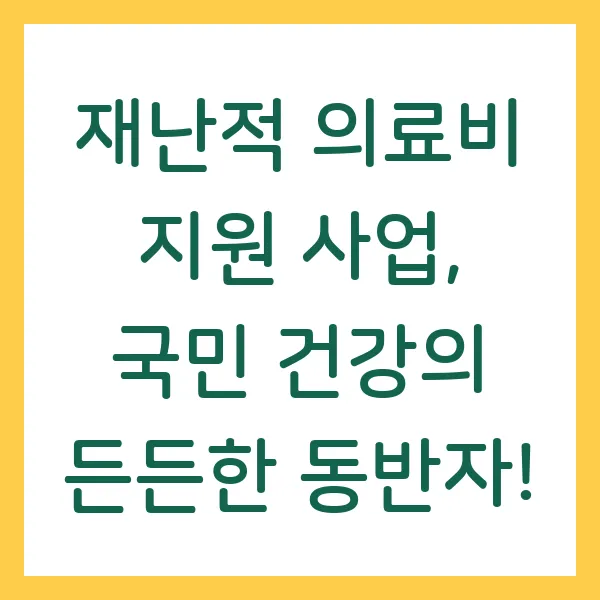 이 글을 통해 재난적 의료비 지원 사업에 대한 궁금증이 해소되셨기를 바랍니다. 더 자세한 정보는 국민건강보험공단 웹사이트 또는 고객센터(1577-1000)를 통해 확인하실 수 있습니다. 건강하고 행복한 삶을 응원합니다!