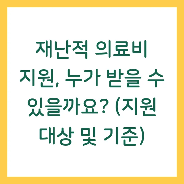가구 연소득 대비 의료비 부담액이 10%를 초과 하는 경우 지원 대상이 됩니다. 개별심사 대상자(중위소득 100~200%)는 20% 초과 시 지원 가능 하며, 수급자/차상위는 80만원, 중위소득 50% 이하는 160만원 초과 시 지원 받을 수 있습니다. 본인의 상황에 맞는 기준을 꼼꼼히 확인하는 것이 중요합니다!