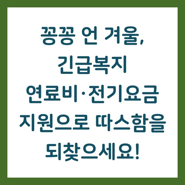 긴급복지 연료비 및 전기요금 지원 제도, 잊지 마세요! 이 제도가 어려운 시기를 극복하고 다시 일어설 수 있는 힘이 되어줄 것입니다. 지금 바로 확인하고, 따뜻한 겨울을 맞이하세요!