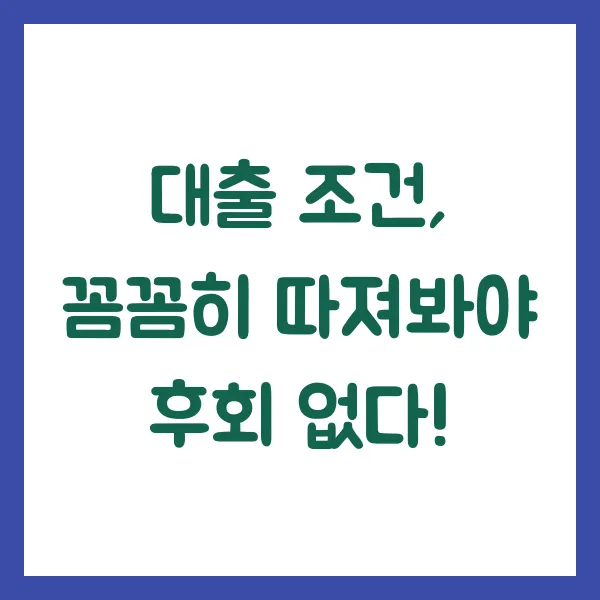 대출을 받을 때는 중도상환수수료 조건도 꼼꼼히 살펴봐야 합니다. 중도에 대출금을 상환할 경우, 금융기관에 따라 수수료가 발생할 수 있기 때문이죠. 중도상환 계획이 있다면, 수수료율이 낮거나 면제되는 상품을 선택하는 것이 유리합니다.