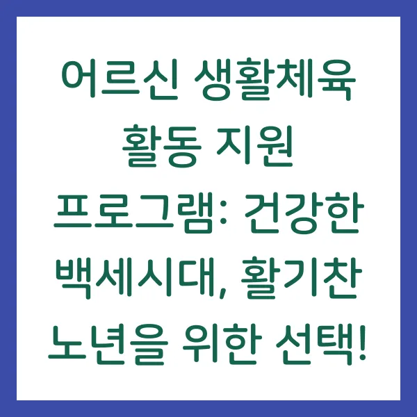 드디어 기다리고 기다리던 어르신 생활체육 활동 지원 프로그램 신청 기간이 돌아왔습니다! 백세시대, 단순히 오래 사는 것이 아니라 건강하고 활기차게 사는 것이 중요하다는 것, 다들 공감하시죠? 이 프로그램, 어르신들의 건강한 노후를 위한 든든한 지원군이 되어드릴 겁니다. 자, 그럼 어떤 혜택들이 있는지, 어떻게 신청해야 하는지 자세히 알아볼까요?