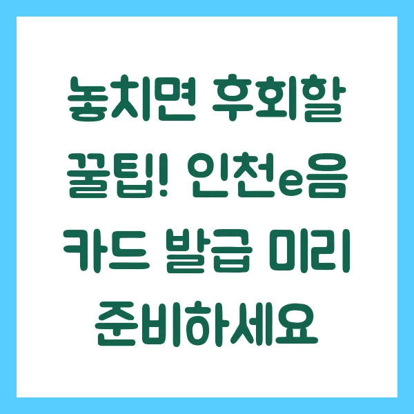 교통비는 인천e음 카드(교통 기능 없는 기본 카드)에 포인트 형태로 지급됩니다. 미추홀구, 연수구, 부평구, 계양구, 서구는 지역e음 카드로, 강화군, 옹진군, 중구, 동구, 남동구는 인천e음 카드로 지급됩니다. 카드가 없다면 신규 발급 후 신청자 주소지로 배송되지만, 미리 발급받아두면 지원금 지급이 더 빨라진다는 사실!