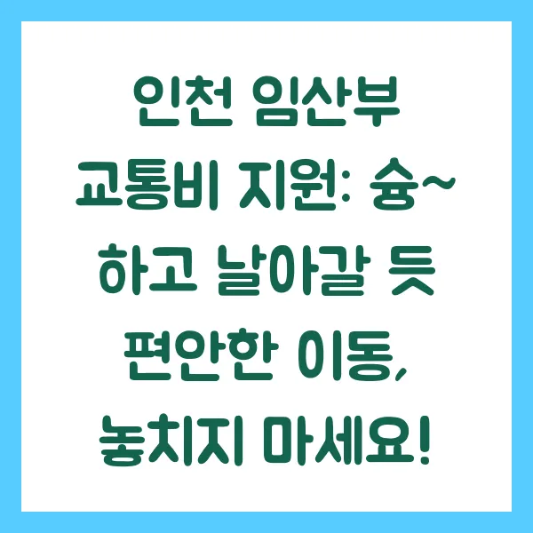 인천시의 임산부 교통비 지원, 꼼꼼히 확인하고 신청해서 더욱 편안한 임신 기간을 보내세요! 50만원 포인트로 가벼운 발걸음, 행복한 외출을 만끽하세요!