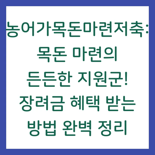 농어업에 종사하시는 분들의 경제적 안정을 위한 정부의 든든한 지원, 바로 농어가목돈마련저축입니다! 이 제도, 얼마나 알고 계신가요? 단순히 저축만 하는 것이 아니라, 정부에서 지원하는 장려금까지 쏠쏠하게 챙길 수 있다는 사실! 이 글에서는 농어가목돈마련저축의 핵심 정보와 함께 장려금 혜택을 받기 위한 자격 요건, 신청 방법까지 꼼꼼하게 알려드리겠습니다.
