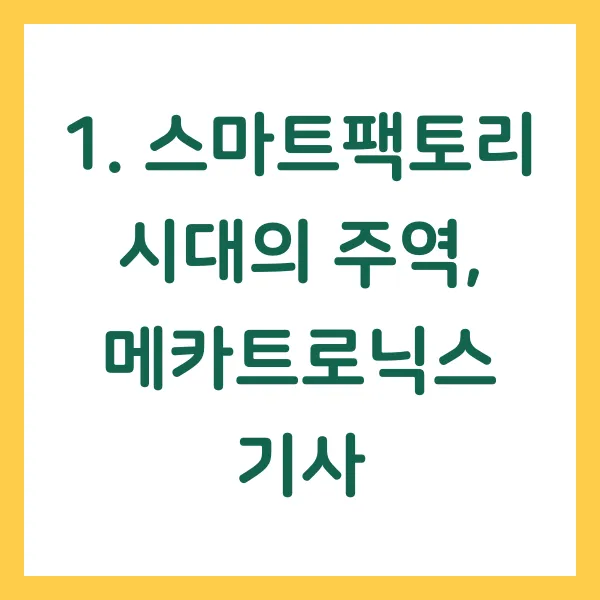 스마트팩토리 도입 확대로 인력 수요 급증! 전통적인 제조업뿐 아니라 다양한 산업 분야에서 활용 가능한 전문 기술이기 때문에 메카트로닉스 기사 자격증 취득은 여러분의 취업 경쟁력을 한층 더 강화해줄 것입니다.