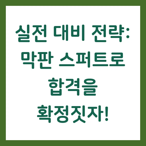 실제 시험과 유사한 환경에서 모의고사를 풀어보면서 실전 감각을 키우고, 시간 관리 연습을 하는 것이 중요합니다. 모의고사 결과를 통해 자신의 강점과 약점을 파악하고, 부족한 부분을 보완하는 데 집중하세요!