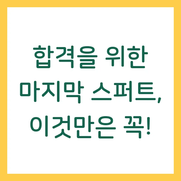 시험이 다가오면 그동안 공부했던 내용을 다시 한번 정리하고, 핵심 내용을 중심으로 복습하는 것이 중요합니다. 특히 자주 틀렸던 문제나 중요하다고 생각되는 부분을 집중적으로 공부하세요!