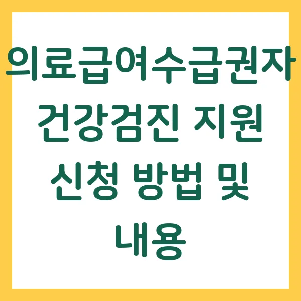 의료급여 수급권자 중 20세 이상 64세 이하 의 세대주 및 세대원이라면 누구나 일반건강검진 혜택을 받을 수 있습니다. 나이, 소득 기준 등 꼼꼼하게 확인하고 혜택을 놓치지 마세요!