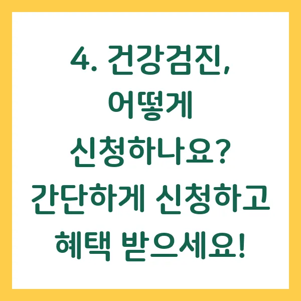 건강검진표를 지참하고 원하는 검진기관에 방문하여 검진을 받으면 됩니다. 복잡한 서류 없이 간편하게 신청하고 건강검진 혜택을 누리세요!