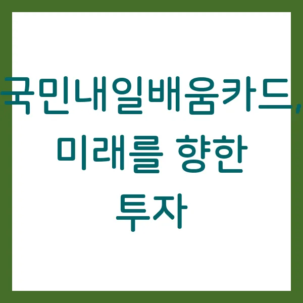 국민내일배움카드는 단순한 훈련비 지원을 넘어, 개인의 잠재력을 깨우고 미래를 향해 나아갈 수 있는 디딤돌입니다. 급변하는 시대, 끊임없는 학습만이 경쟁력을 유지하는 비결입니다! 국민내일배움카드를 통해 미래를 향한 투자를 시작하고, 꿈을 현실로 만들어보세요! 지금 바로 신청하세요!