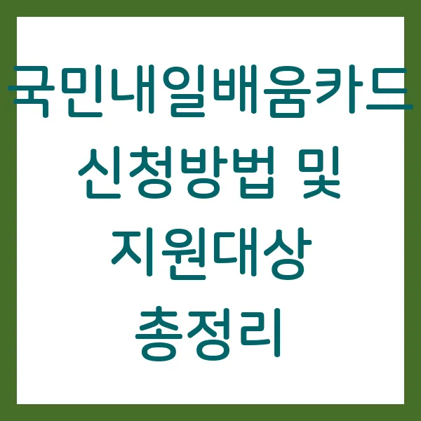 국민내일배움카드는 급변하는 취업 시장에서 여러분의 경쟁력을 확보하기 위한 필수 아이템입니다! 4차 산업혁명 시대, 지금 필요한 건 끊임없는 학습과 자기 계발?! 국민내일배움카드를 통해 최대 500만원의 훈련비를 지원받아 미래를 준비하세요! 신청 방법, 지원 대상, 훈련 과정 등 모든 정보를 여기서 확인해보세요! 지원 대상? 훈련 과정? 궁금한 모든 것을 속 시원하게 알려드립니다!