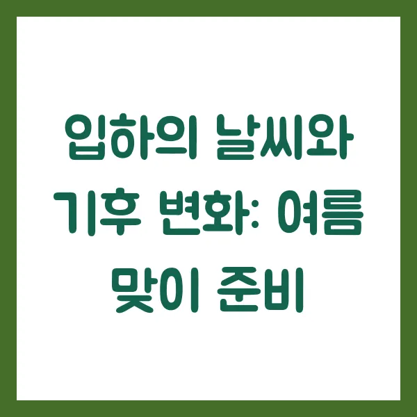 입하를 기점으로 기온은 점차 상승하여 낮 최고 기온이 25도를 웃도는 날이 많아집니다. 그러나 아침저녁으로는 여전히 봄의 기운이 남아있어 일교차가 크게 나타납니다. 이러한 변화무쌍한 날씨는 우리 몸의 면역력을 떨어뜨리고 감기와 같은 질병에 취약하게 만들 수 있으므로 각별한 주의가 필요합니다.