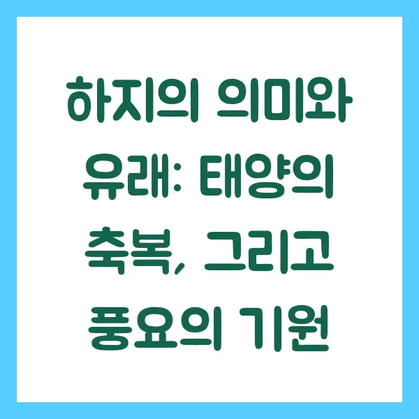 하지는 낮이 가장 길다는 의미처럼, 태양의 에너지가 절정에 달하는 날입니다. 이 시기는 단순히 24절기 중 하나를 넘어, 자연의 변화와 인간의 삶이 밀접하게 연결되는 중요한 전환점이기도 합니다. 하지의 의미와 유래, 다채로운 풍습, 그리고 날씨 변화까지 깊이 있게 살펴보겠습니다.