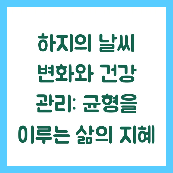 하지를 기점으로 기온은 급격하게 상승하고, 장마철이 시작되면서 습도 또한 높아집니다. 이러한 변화는 건강에 영향을 미칠 수 있습니다. 충분한 수분 섭취와 규칙적인 생활 습관을 통해 건강을 유지하는 것이 중요합니다. 특히, 노약자나 어린이는 더위와 습도에 취약하므로 각별한 주의가 필요합니다.