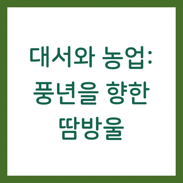 대서는 벼가 쑥쑥 자라는 시기입니다. 이 시기에는 논에 물을 충분히 대주는 것이 중요합니다. 물이 부족하면 벼의 성장이 더뎌지고 병충해 발생 위험이 높아지기 때문입니다. 농부들은 논둑을 점검하고 물꼬를 조절하며 벼의 생육 상태를 꼼꼼히 살핍니다.