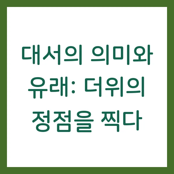 대서는 보통 중복과 시기가 겹치거나 매우 가깝습니다. 삼복더위 중 두 번째 복날인 중복과 맞물려 더위가 극에 달하는 시기입니다. 우리 조상들은 이 무더위를 이겨내기 위해 '이열치열'의 지혜를 발휘했습니다. 뜨거운 음식을 먹어 몸의 기운을 북돋고 더위를 이겨내려 했던 것이죠.