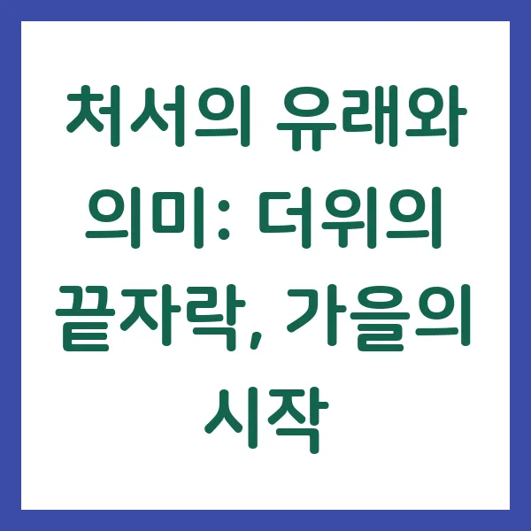 처서는 여름의 끝자락과 가을의 시작을 알리는 절기입니다. 자연의 변화에 귀 기울이고, 건강 관리에 유의하여 새로운 계절을 맞이할 준비를 해야겠습니다. 옛 조상들의 지혜가 담긴 전통 풍습을 되새기며, 환절기 건강을 지키고 풍요로운 가을을 맞이하시길 바랍니다.