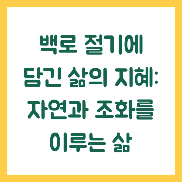 백로는 자연의 순환과 변화의 중요성을 일깨워주는 절기입니다. 계절의 변화에 맞춰 생활 습관을 조절하고, 자연과 조화를 이루는 삶의 지혜를 배우는 기회입니다. 백로의 의미를 되새기며, 자연의 섭리에 귀 기울이고 순응하는 삶의 자세를 가져보는 것은 어떨까요?