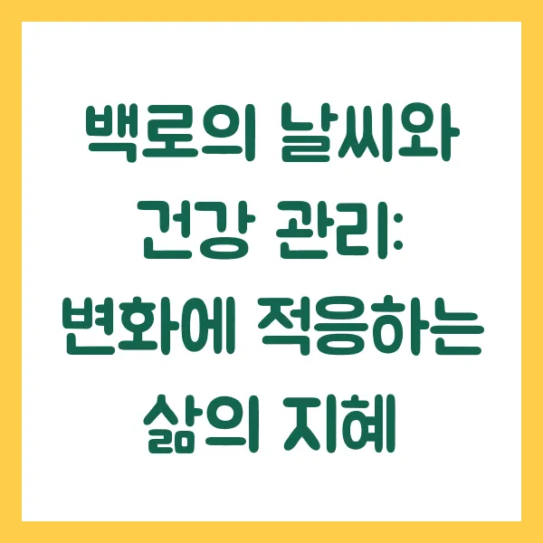 백로 이후에는 낮과 밤의 기온 차가 더욱 커지기 때문에 옷차림에 신경 써야 합니다. 얇은 겉옷을 준비하여 체온 조절에 유의하고, 건조한 날씨에 대비하여 피부 보습에도 신경 쓰는 것이 좋습니다. 가을의 정취를 만끽하며 건강하게 계절의 변화를 맞이하는 지혜가 필요합니다.