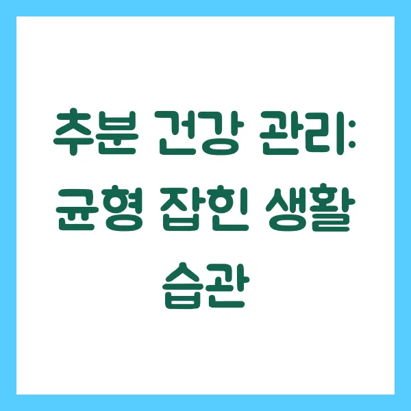 추분에는 제철 과일과 채소를 충분히 섭취하여 영양 균형을 맞추는 것이 중요합니다. 사과, 배, 감, 밤 등의 가을 제철 과일은 비타민과 미네랄이 풍부하여 면역력 강화에 도움을 줍니다. 또한, 버섯, 고구마, 무 등의 제철 채소도 균형 잡힌 식단에 포함시키는 것이 좋습니다.