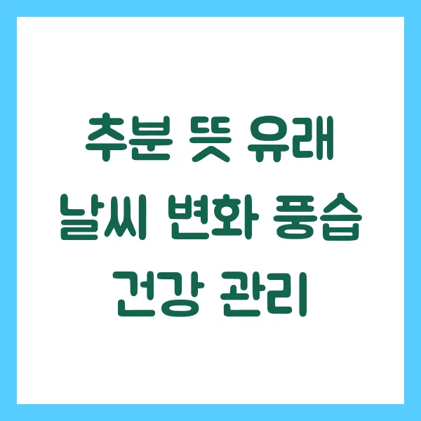 추분을 전후해서는 낮과 밤의 기온 차가 10도 이상 벌어지는 경우가 잦습니다. 낮에는 따스한 햇볕이 내리쬐지만, 해가 지면 기온이 급격히 떨어지면서 쌀쌀함을 느끼게 되는데, 이러한 일교차는 우리 몸의 면역력을 저하시키고 감기 등의 질병에 취약하게 만들 수 있습니다. 따라서 추분에는 얇은 겉옷을 여러 겹 껴입는 등 체온 조절에 신경 쓰는 것이 중요합니다.