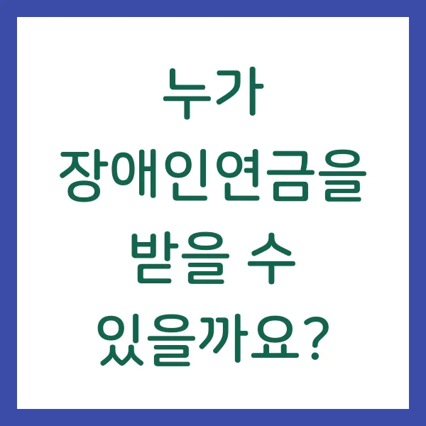 장애인연금은 만 18세 이상의 등록된 중증장애인 중 소득인정액이 선정기준액 이하인 분들에게 지급됩니다. 여기서 '중증'이란 장애인연금법에서 정한 기준에 해당하는 장애 정도를 의미하는데요, 종전 1급, 2급, 3급 중복 장애에 해당하는 분들이 이에 속합니다. 소득인정액은 본인과 배우자의 소득과 재산을 합산하여 계산한 금액으로, 2025년 기준 배우자가 없는 단독가구는 138만원 이하, 배우자가 있는 부부 가구는 220.8만원 이하여야 합니다. 자세한 기준은 보건복지부 고시를 참고해주세요!