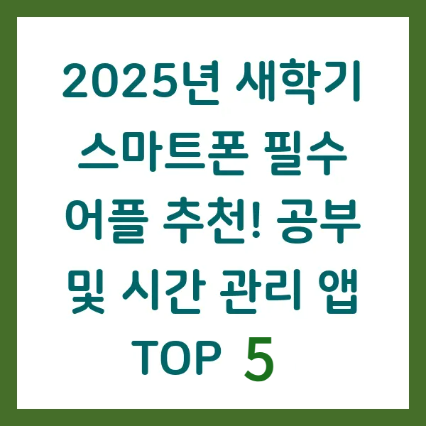 새 학기, 새로운 시작! ✨ 스마트폰 앱 활용으로 학업 효율과 시간 관리를 극대화하세요! 2025년 새 학기를 맞아 꼭 필요한 스마트폰 앱 TOP 5을 소개합니다. 공부, 시간 관리, 소통까지, 스마트한 학습 생활을 위한 최고의 앱들을 지금 바로 만나보세요! 더 이상 쌓여가는 할 일에 압도되지 말고, 스마트폰의 힘을 빌려 효율적으로 공부하고 시간을 관리하는 방법을 알아보세요!