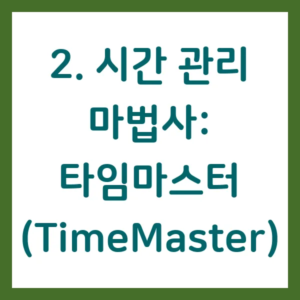 장점: 뽀모도로 기법을 활용한 효율적인 시간 관리, 다양한 커스터마이징 옵션, 심플하고 직관적인 UI로 사용이 간편합니다. 단점: 과도한 알림 기능이 있을 수 있으며, 유료 테마 구매 필요 (개당 1,200원) 사용자 후기: "타임마스터 덕분에 집중력이 향상되었어요! 딴짓하는 시간이 줄어들고 공부 효율이 높아졌어요." - 고등학생 이OO 가격: 무료 (기본 기능), 유료 테마 (개당 1,200원)