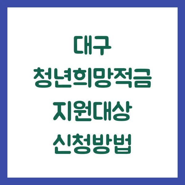 청년 여러분, 꿈을 향한 힘찬 날갯짓을 준비하고 있나요? 대구시가 여러분의 꿈을 응원하며 자립의 든든한 디딤돌이 되어 드립니다! 바로 "대구 청년희망적금"을 통해서 말이죠. 이 제도, 정말 놓치면 너무 아깝습니다! 자, 그럼 지금부터 대구 청년희망적금의 모든 것을 속속들이 파헤쳐 보겠습니다.