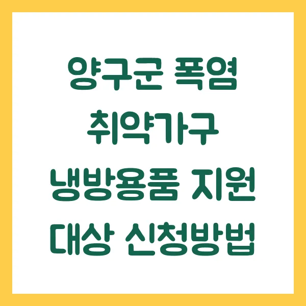 무더위가 기승을 부리는 여름, 냉방기기 없이 폭염에 고스란히 노출되는 이웃들을 생각하면 마음이 아프죠? 특히 냉방 취약계층에게 여름은 견디기 힘든 계절입니다. 양구군은 이러한 어려움을 겪는 분들을 위해 냉방용품 지원 사업을 진행하고 있답니다! 지금 바로, 폭염 취약가구 냉방용품 지원에 대해 자세히 알아보고, 혜택을 받을 수 있도록 도와드릴게요!