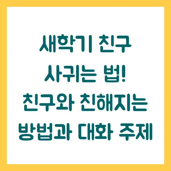 두근두근 새 학기! 낯선 교실, 새로운 친구들... 설렘과 동시에 어색함도 느껴지시나요? 걱정 마세요! 🤗 새로운 친구들을 사귀고 싶은 당신을 위해, 인싸가 아니어도 괜찮은, 누구나 쉽게 친구를 만들 수 있는 비법을 대방출합니다!