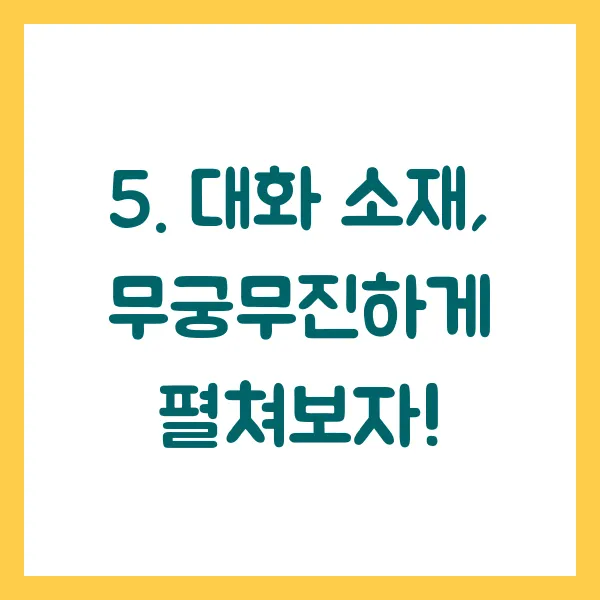 친구와 어떤 이야기를 해야 할지 고민된다면, 다음 대화 주제들을 참고해 보세요!